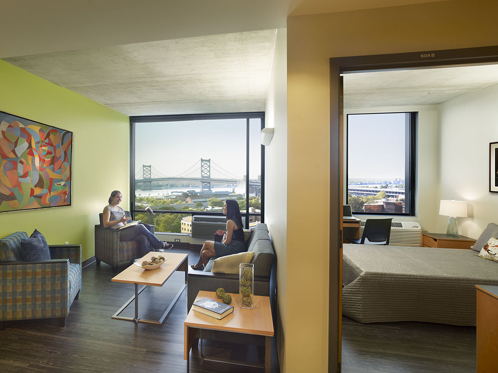 The Rutgers Camden Graduate Student housing project was aimed at boosting on-campus enrollment and revitalizing the city's downtown. The 12-story building on Cooper Street, the first new student housing in Camden in more than two decades, houses about 350 students and includes about 7,000 square feet of retail space on the ground level.