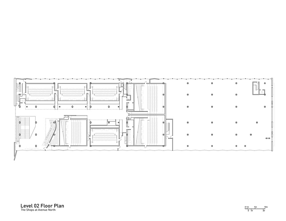 Two access strategies were implemented to connect the residence building to the neighborhood. The first strategy is a diagonal pedestrian walk running northeast into the heart of Temple’s campus. The second is a drop-off parking lot and access point from the southwest. This diagonal circulation creates a unique opportunity for student-oriented services in the base of the residence building.