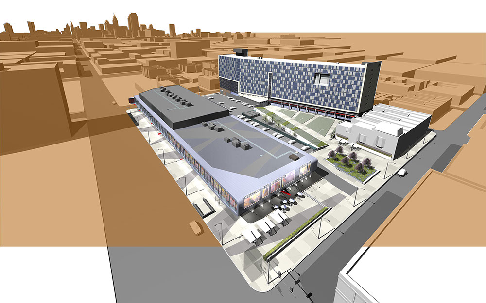 The program for this 1200-bed Residence Building and 91,000 square foot retail building addresses the continuing renewal along the North Board Street Corridor and its form is conceived to minimize its impact to the surrounding community. Adjacent to Temple University, this revitalized city block has become an active commercial and residential center outside the campus.