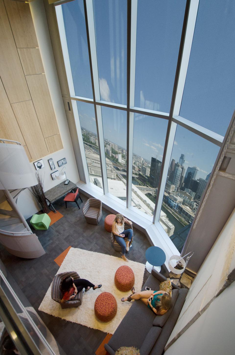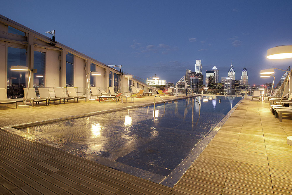 Evo and Cira Green promote socialization of its residents through an architecture of community. Its shared spaces vary in scale and function to provide multiple venues for interaction and community. The rooftop pool deck, community room and fitness center offer a decidedly different social experience, while creating opportunity for happenstance interaction and new connections among residents. The pool deck floats among the skyscrapers of Center City as the building parapet dips out of the view shed and the Philadelphia skyline is reflected in the pool’s infinity edge, reinforcing the building’s physical and metaphorical location between the universities and the central business district. Registered Evo at Cira Centre South is an off-campus residential tower located in the heart of Philadelphia. The tower extends the Philadelphia skyline to the western bank of the Schuylkill River and defines a gateway to University City, known for its large concentration of colleges, universities, health systems and think tanks.