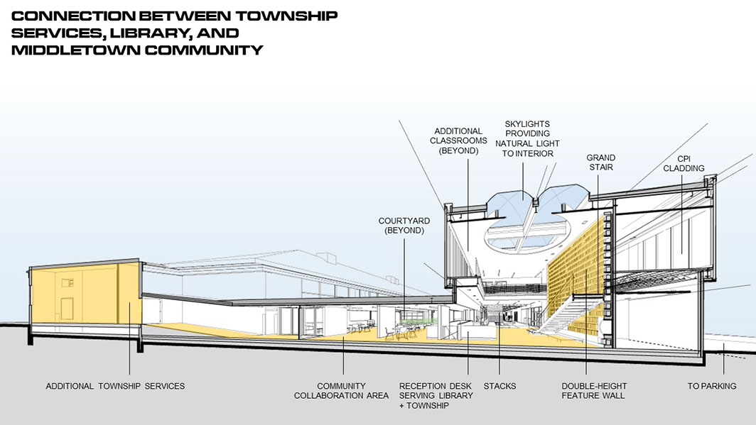 The central atrium space will be surrounded by Tutoring Rooms, a Recording Studio, Community Collaboration Spaces and a hands-on Maker Space that will feature hands-on robotics and digital fabrication learning for the local community.