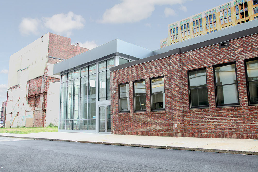 Connecting the White Building and the Shed Garage Renovation is a new construction that contains a reception area, dancer locker rooms, and a 3500 square foot rehearsal studio. The rehearsal studio's size allows the Ballet to replicate the stage of The Academy of Music in preparation for performances. The rehearsal studio features a glazed wall where people can observe dancers in rehearsal. A large skylight in the reception area floods the area with daylight.