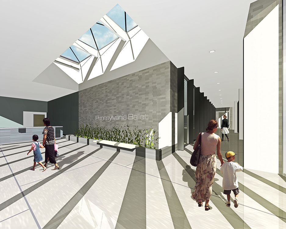 The new complex, along The Avenue of the Arts, will allow the Ballet's multiple departments to exist under one roof. This facility will establish a tangible identity for the Pennsylvania Ballet on the city's major arts corridor, cementing the Ballet as an important part of the region's cultural landscape and a major presence on Broad Street.