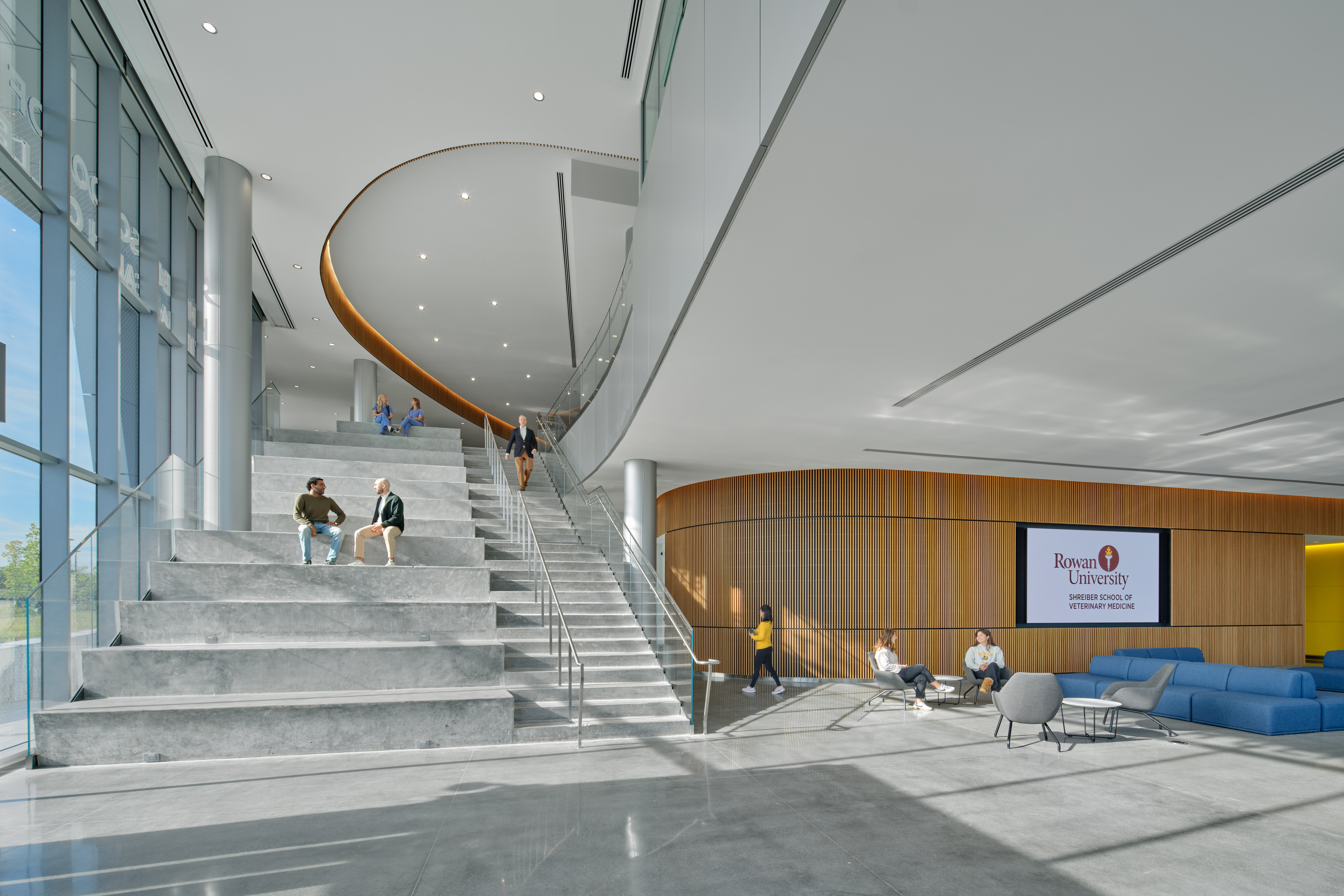 Rowan University enlisted Erdy McHenry Architecture to design and construct a pioneering 177,000-square-foot facility, bringing together three distinct yet interconnected programs: a veterinary school, a veterinary hospital, and state-of-the-art biomedical research labs. This visionary interdisciplinary approach fosters collaboration and supports innovation, creating an ecosystem where ideas flow freely to strengthen each program.