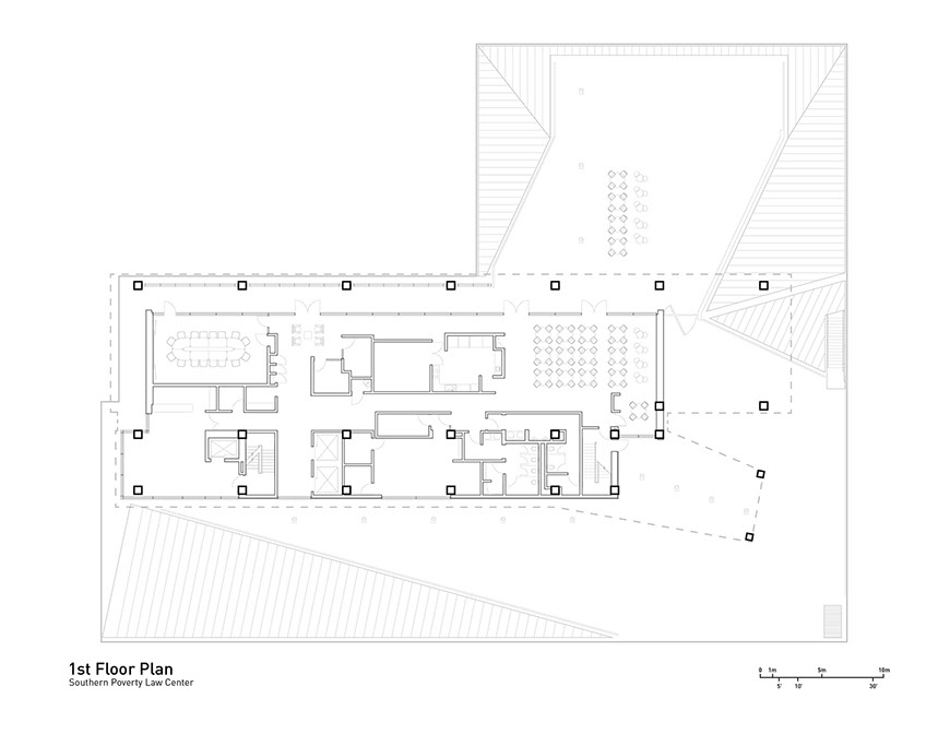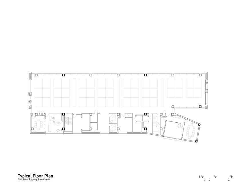 Located in Montgomery, Alabama, the Southern Poverty Law Center is known for its courtroom accomplishments, legal victories against white supremacist groups, monitoring of hate activity across the country, national tolerance education and the Civil Rights Memorial. The work of the Southern Poverty Law Center is essential in the fight against intolerance in this country and the struggle for equality. The architecture of the building is intended to express the values and mission of the client. The south facade emphasizes their solidarity and strength of purpose.