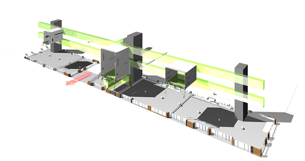 Recognizing that the piazza is a social phenomenon rather than a physical one, the redesign of this project promoted the creation of community at a variety of scales ranging from the way the residential units are configured to the strategies used to activate the public spaces. The success of the design proved to establish the project as a pivotal part of the regeneration of the Northern Liberties community. Focusing on the social aspects involved in creating an active piazza, the residential units are configured as bi-level loft units in a skip-stop configuration allowing each unit to maintain a connection to the piazza and views of the city while creating an activated facade both on the street side and piazza side. Furthermore, to promote a stronger connection with the community and beyond, access at street level was created by breaking the buildings into segments establishing passages from the surrounding neighborhood and promoting a connection to the transit stop and shopping areas in and around the Piazza. In relationship to the city as a whole, the Piazza has become the fifth square to Thomas Holme’s plan for the city, drafted at William Penn’s direction upon founding this “City of Brotherly Love”. In that sense, this community is connected well beyond a given floor or building but to the larger city of neighborhoods and the lessons of urban planning tested and evolved over centuries.
